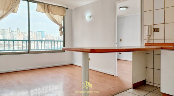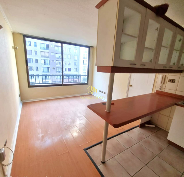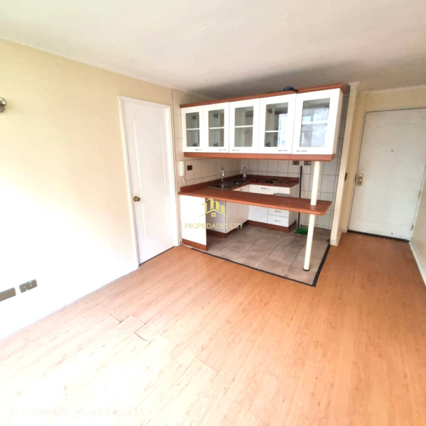 Living comedor juntos, con cocina americana semi amoblada con encimera y campana, barra desayunadora.