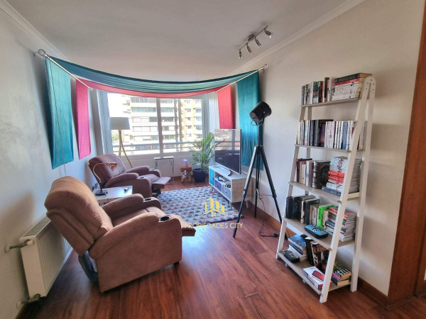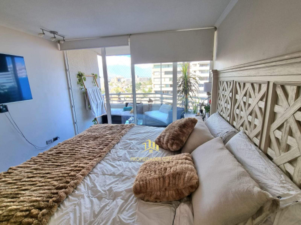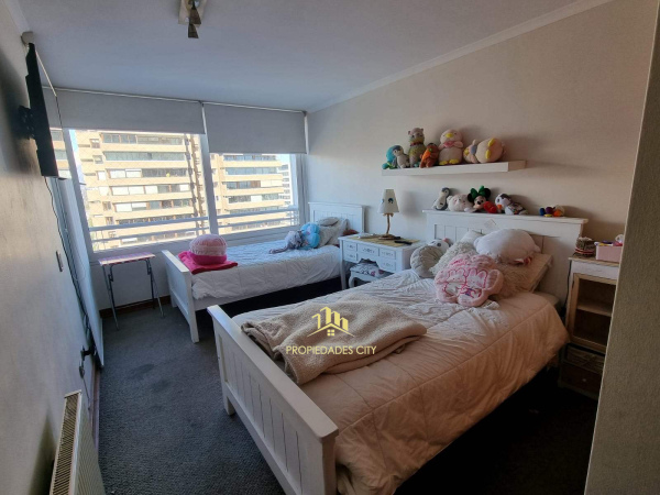 Edificio cuenta con sala de eventos, gimnasio, áreas verdes, juegos infantiles, piscinas, estacionamiento de visitas, cámaras de seguridad y conserjería 24/7