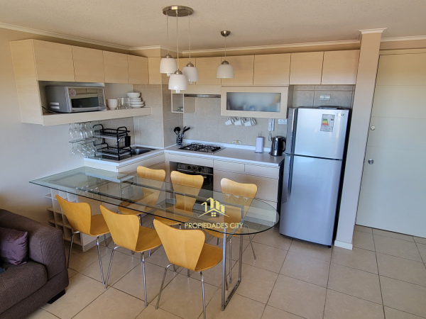 Consta de living comedor junto, con cocina integrada amoblada completa.