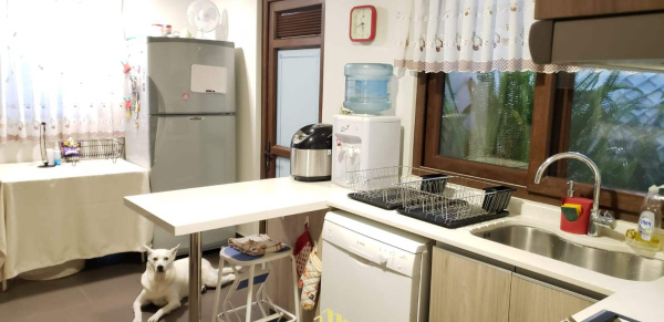 Comedor con entrada directa a una espaciosa cocina, amoblada con encimera horno y campana, espacio para un cómodo comedor de diario.