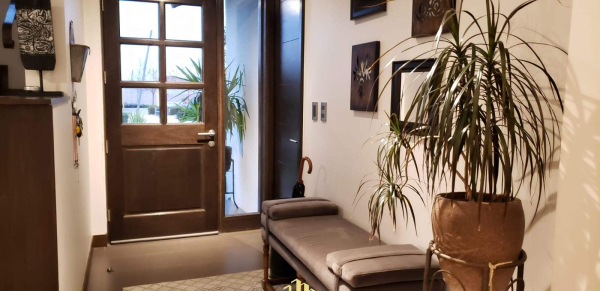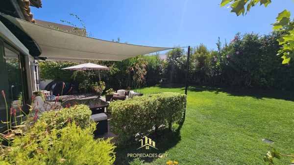 Hermoso patio con riego automático, lindos arboles, bebedero de aves, terraza con cerámica y toldo de vela para el sol de la mañana, orientación oriente.