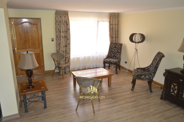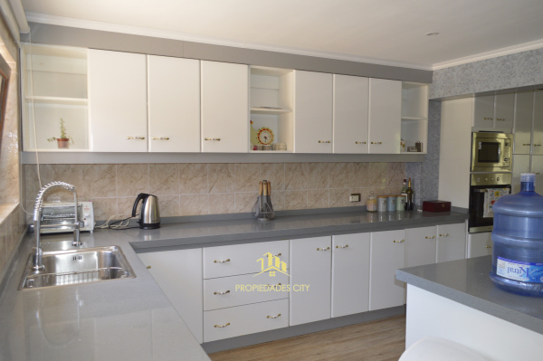 Consta de living comedor juntos con doble altura, piso flotante y bosca, cocina completamente amoblada con cocina vitrocerámica en amplia isla, horno y microondas empotrados, mesón de granito.