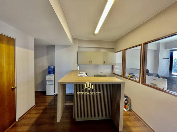La oficina esta totalmente remodelada. El acceso es recibido por un hall de entrada, tres amplios privados, donde dos de ellos disfrutan de una despejada y linda vista al oriente, y cuenta con dos baños.