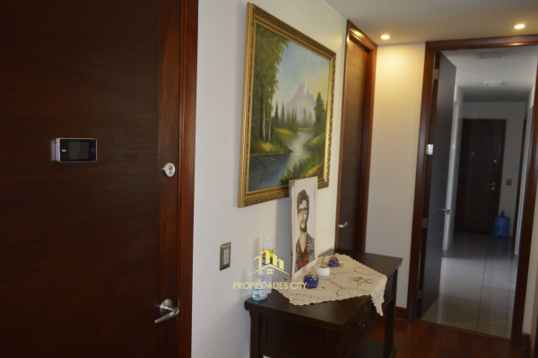 Hall de entrada, amplio living y comedor juntos con acceso a la gran terraza panorámica con cierre perimetral de vidrio, baño de visita, sala de estar o escritorio con salida a la terraza, tres dormitorios en suite con walkin closet, dormitorio principal con salita de estar con doble terraza y walkin closet, baño con tina de hidromasaje, doble vanitorio con cubierta de mármol, ducha con shower door, zona de baño independiente con puertas de vidrio, baños con luz natural.