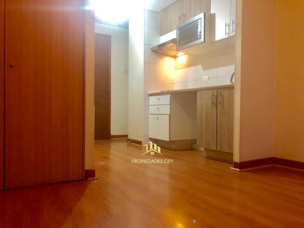 Céntrico y moderno departamento tipo estudio (un ambiente) en venta. A pasos del metro Parque Almagro (L3), Toesca (L2) y Moneda (L1), orientación sur, cercano a universidades y supermercados Tottus y Lider.