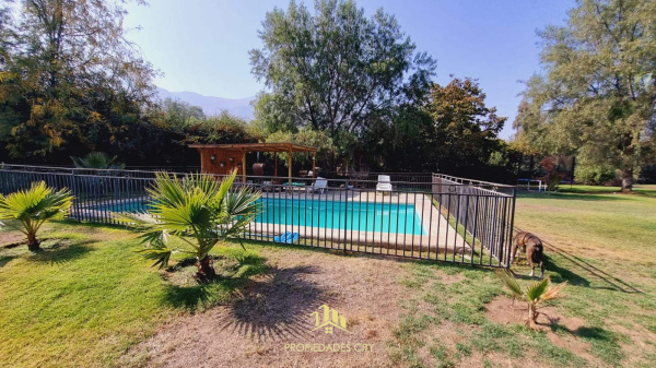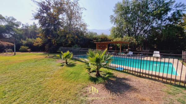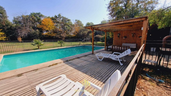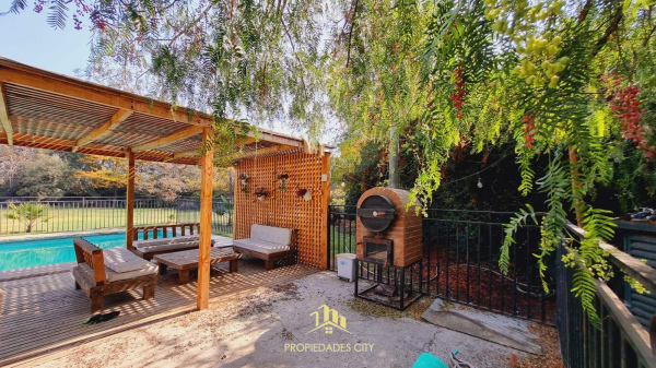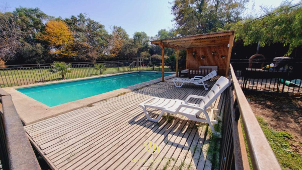 Piscina con reja de seguridad, quincho y horno de barro.